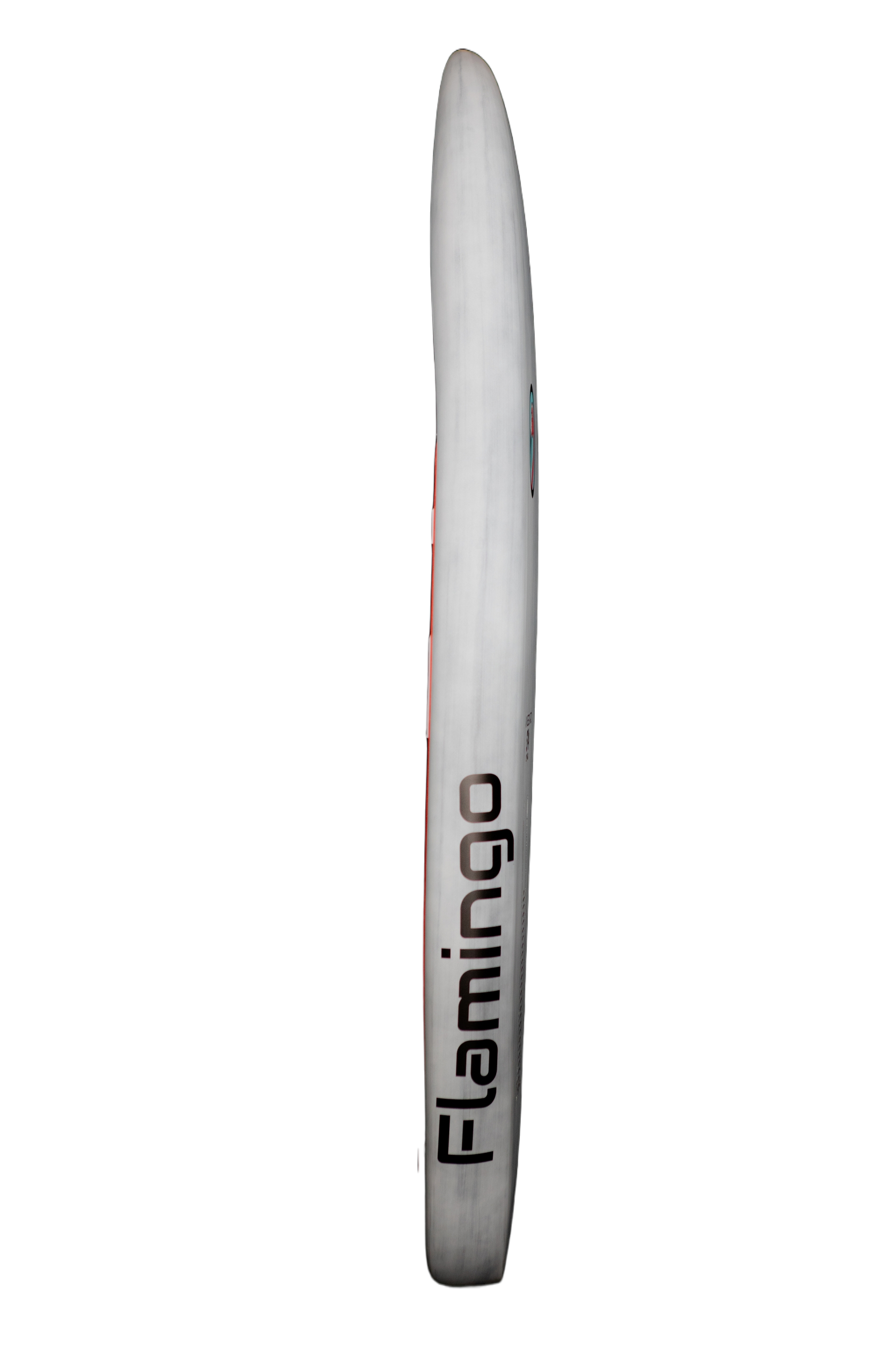 The longer narrow profile has increased fore and aft stability on takeoff when it slips through the water with minimal resistance allowing the use of smaller wings and foils for when you’re up and foiling. Once foiling the narrower board immediately feels nicer upwind and you can see the upper foil tip for reference.